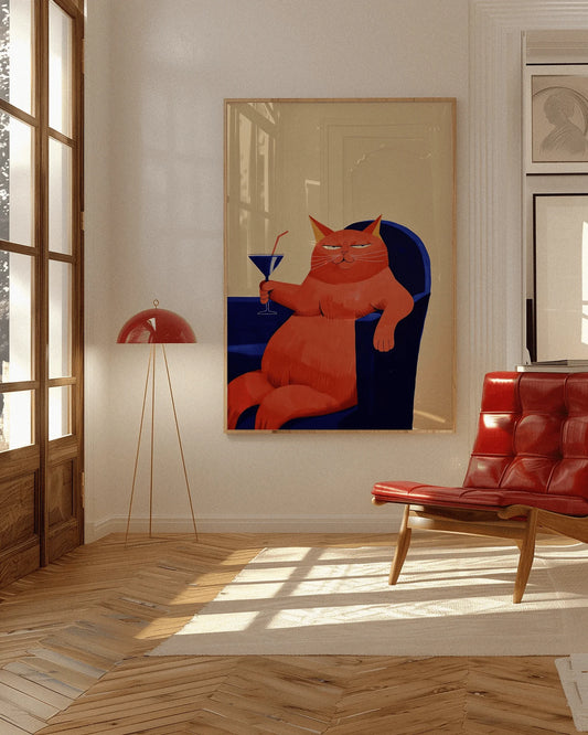 SaleWine Lover Cat Print